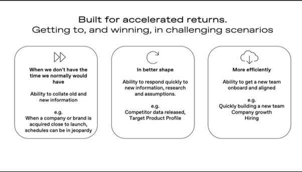 It also provides the ability to embed a deep, structured process that helps the multiple internal stakeholders contributing to the development of a strategy, be more creative, provide visibility around their contributions, and the decisions that are being made.By using a system such as NMBLR which facilitates the development of strategy to successfully commercialise innovative therapies, virtually, on a global scale, we find the ability to navigate and assimilate the wealth of complex data to make informed strategic choices, in an agile way.
