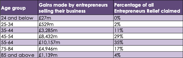 Age breakdown of Entrepreneurs Relief claimed in 2019-20 tax year
